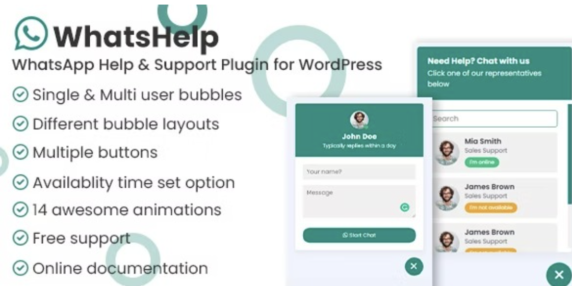 Whatsapp chat support is a WordPress plugin that allows website owners to easily add a WhatsApp chat button to their website. This allows visitors to quickly contact the website owner or support team through the WhatsApp messaging app. The plugin also includes features such as customizable button design, automatic message pre-fill, and offline message support. By using this plugin can increase the customer...